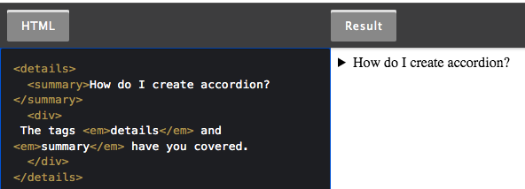 You can also use the basic <details> and <summary> tags to create something simple like this: