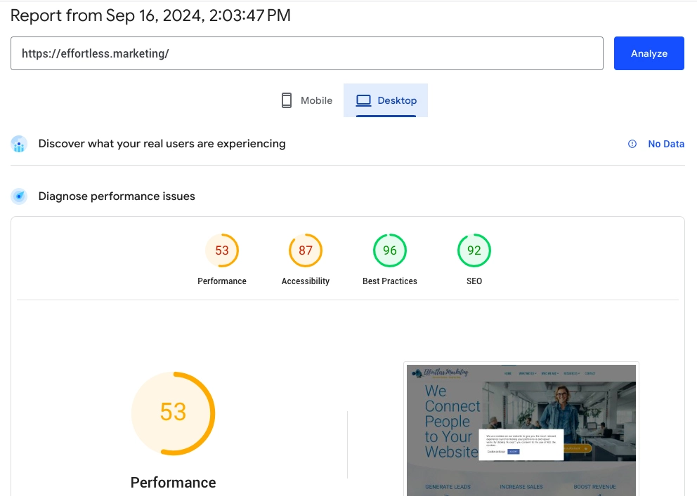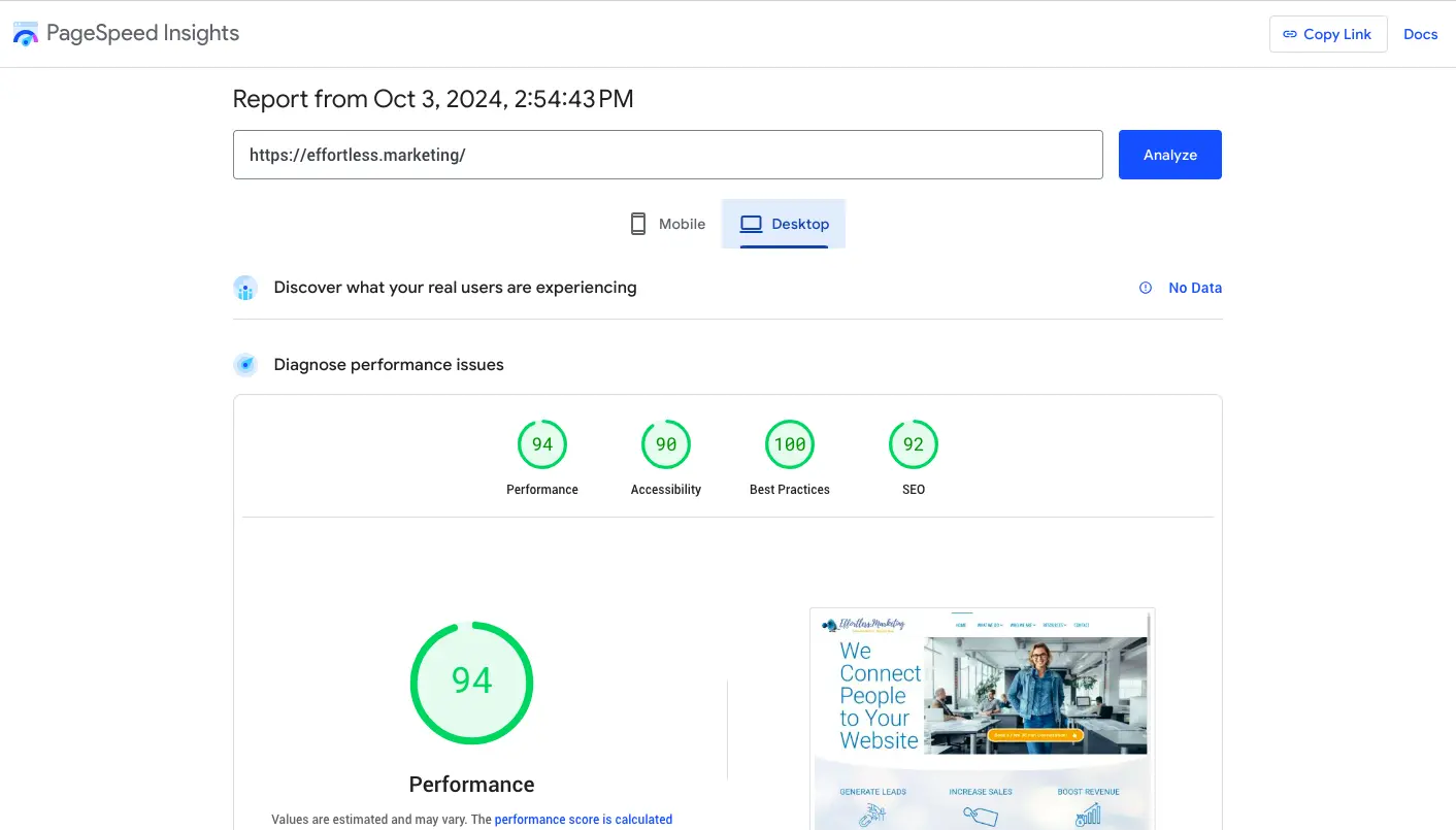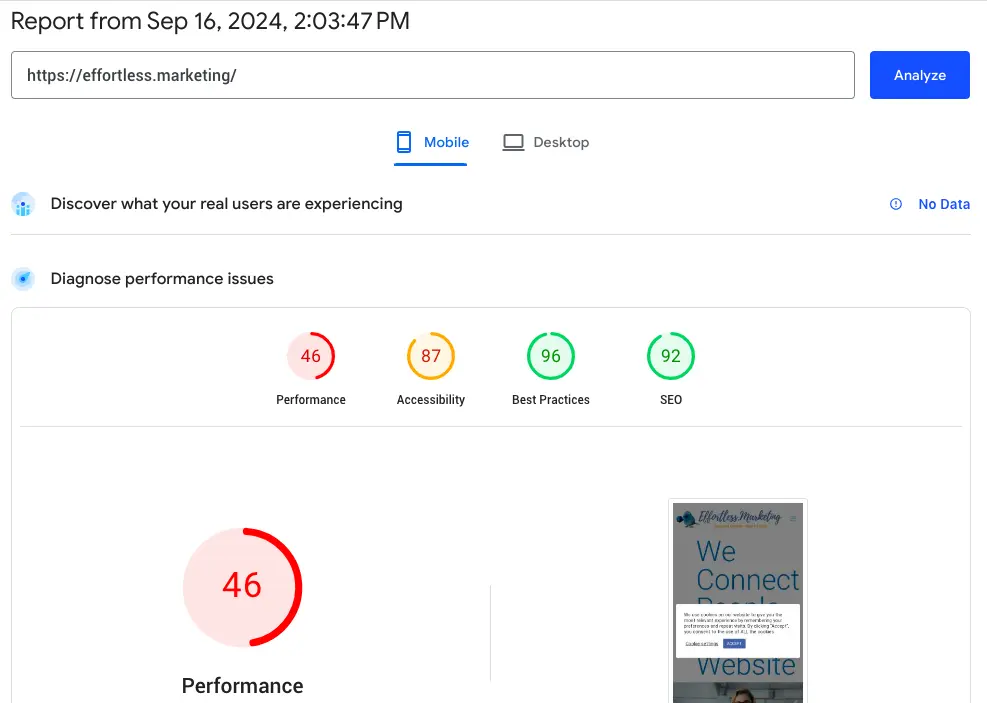 Google offers a free service called PageSpeed Insights. While there are other similar tools available, PageSpeed Insights covers everything we need, and since we’re aiming to meet Google’s speed requirements, it only makes sense to use their tool. It’s important to note that this service analyzes the loading speed of the specific page you provide, which doesn’t guarantee the same speed for every page on your site.