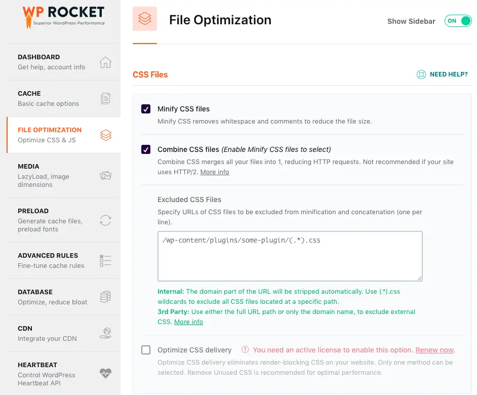 Minify CSS Files – This means the plugin will remove unnecessary spaces and comments in the CSS files, optimizing them for better performance. This option is usually enabled by default when installing the plugin.