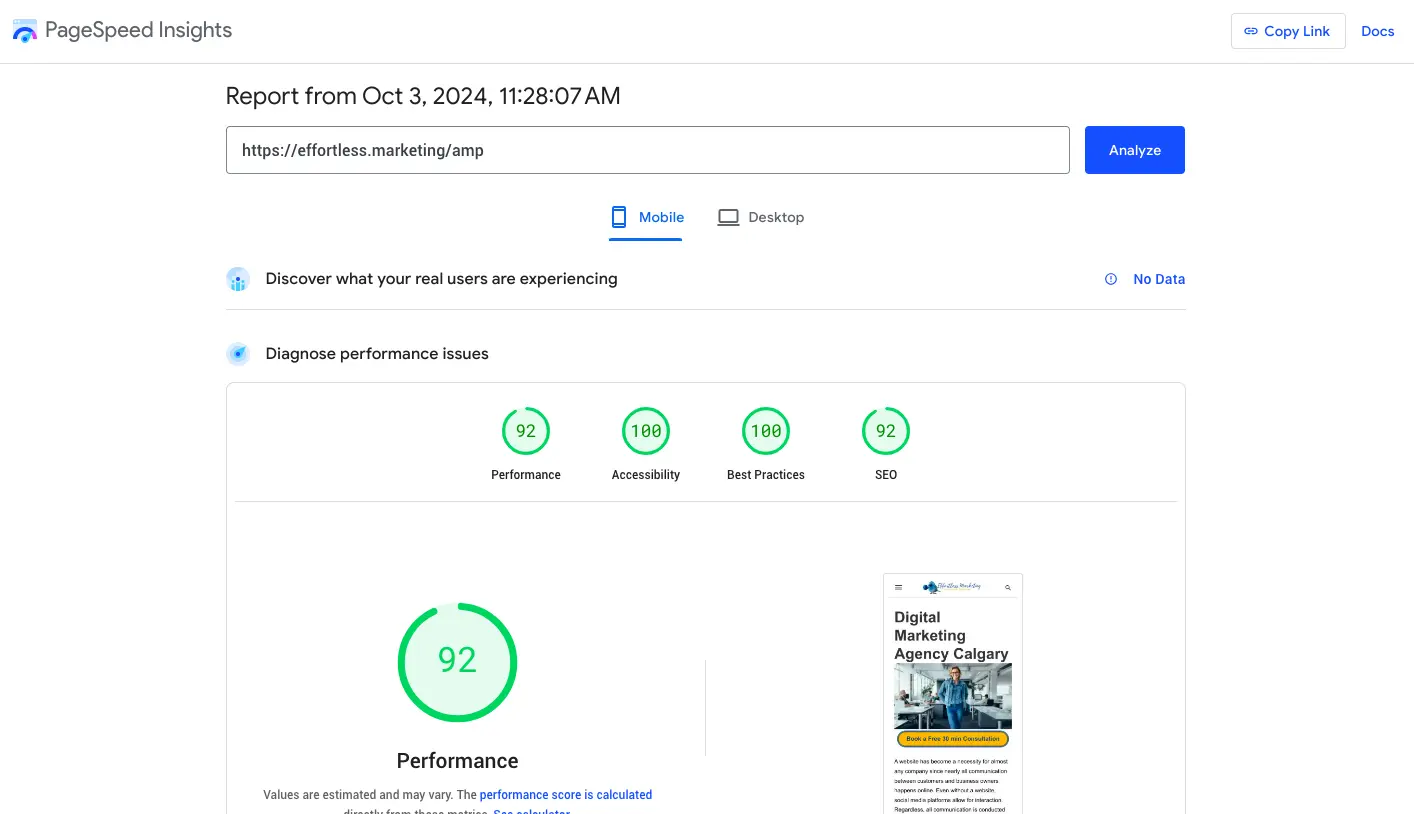 After AMP was implemented, the speed became 92 points: